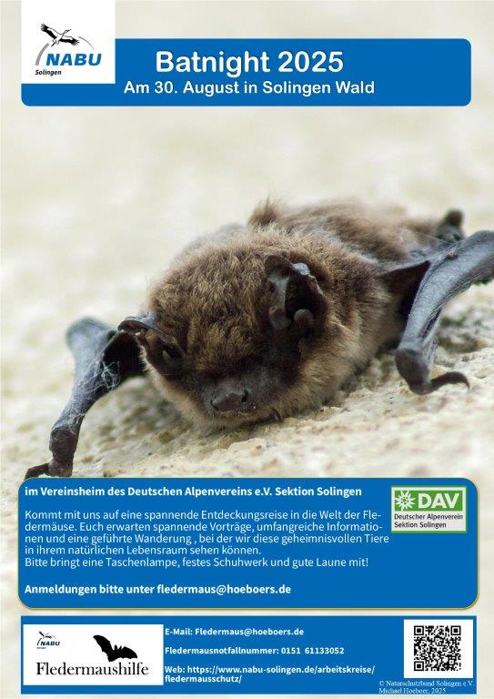 Für die Naturfreunde Solingen Wald kommt die NABU Solingen Fledermaushilfe ins Holzerbachtal und erzählt einiges zum Thmea Fledermäuse. Im Anschluss gibt es eine Exkursion in der wir die Schönen